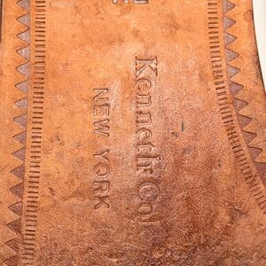 Leather sole featuring embossed Kenneth Cole New York branding. Natural brown leather with decorative edge tooling. Clean, classic footwear detail.