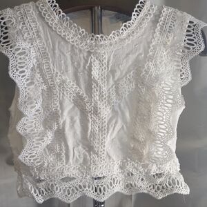 • White cotton with intricate crochet lace trim