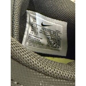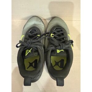 Nike Giannis Immortality 3 basketball shoes feature a sleek black and grey mesh upper with vibrant volt green accents. Designed for young athletes, these sneakers include a signature Swoosh on the sides and Giannis Antetokounmpo's branding on the tongue and heel. The lightweight construction and durable rubber outsole provide excellent traction and support for on-court performance or everyday wear. Note the visible scuffing on the toe boxes as shown in the photos. Smoke free home some signs of wear overall worn onlyworn only a handful of times.