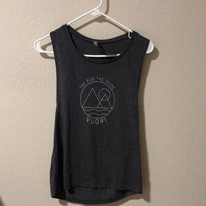 Graphic with a muscle-tank fit, the Vuori women's The Rise The Shine Tank features a sun/mountain graphic on the front with a classic cotton feel. Great for yoga, training, hiking and chilling.