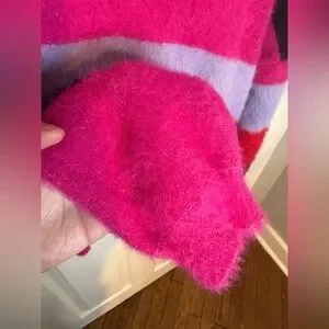 House of Harlow 1960 sweater, HOH x Revolve,colorblock sweater, fuzzy knit sweater, boho sweater, cozy winter sweater, fall fashion, winter fashion, red pink purple sweater, statement sweater, sold out House of Harlow, women’s size large sweater