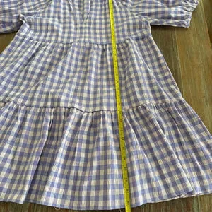 Hyacinth House, Tuckernuck, Sutton Dress, Gingham Mini Dress, Lavender Purple, Baby Pink, Tiered Babydoll, Puff Sleeve, Ruffle Neck, Cottagecore, Preppy, Summer Dress, Coastal Grandma, Brunch Outfit, Flowy Mini