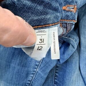 Straight leg women's jeans from LOFT. Medium blue wash with subtle fading. Rolled cuffs show contrast chambray. Classic five-pocket styling and belt loops. Clean, versatile denim for everyday wear.