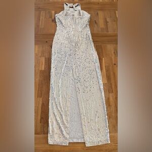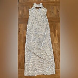 Adrianna Papell White Iridescent Sequin Strapless Gown