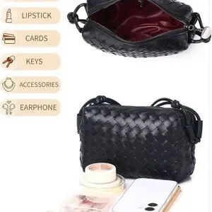 Discover timeless elegance with this black woven leather bag. Perfect for any occasion, it combines style and functionality.
