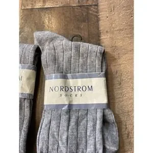 This product is a set of two pairs of vintage Nordstrom grey ribbed knee-high socks, perfect for retro style enthusiasts. Made in the United States, these socks are designed for women in size 9-11 and feature a classic dress sock style. The knee-high length adds a touch of sophistication, making them a stylish addition to any outfit.
