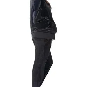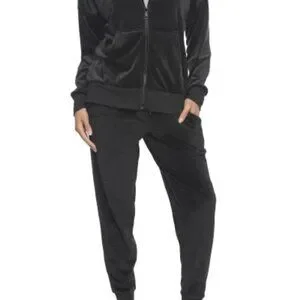 This ladies' two-piece lounge set features ultra-soft fabric for maximum comfort. It includes a full-zip hoodie jacket with front pockets and a pull-on jogger pant with an adjustable waist drawstring and side pockets. Designed with a relaxed fit, it's perfect for casual, cozy wear.