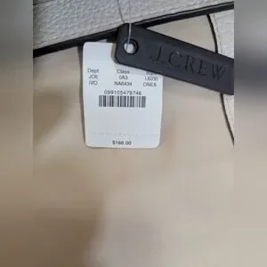 The item in the image is a J.Crew Bristol Crossbody Bag in laser-cut ivory leather.