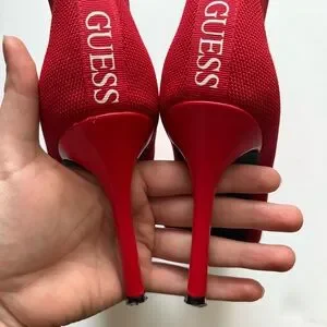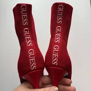 Guess Red Stiletto Knit Sock Mesh Ankle Booties