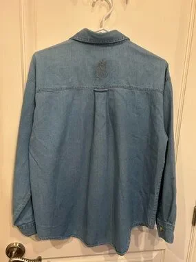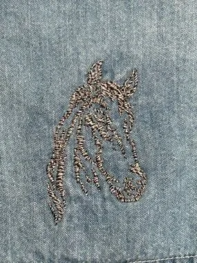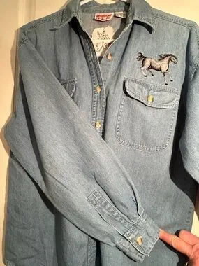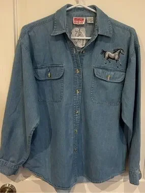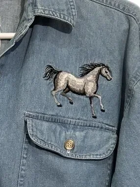 Vintage Denim Shirt with Horse Embroidery – Western Style – Size Medium