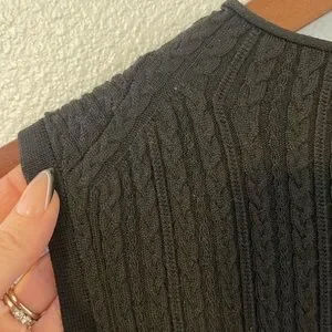 Theory Black Cable Knit Wool Blend Sleeveless Midi Dress