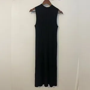 Like new! Currently in stores retailing for $425! Chic black midi dress by Theory. Sleeveless with a ribbed texture. Perfect for versatile styling.