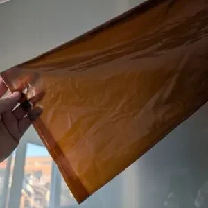 This gorgeous glossy semi-transparent coppery-brown jacket is a very fun way to stay dry in the rain.