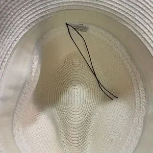 This hat is so cool think festival, concert, rodeo, date night, beach, vacation, sweatband inside has adjustable strings for a perfect fit, the band has 2 tone wood beads also silver with turquoise beads… inside measures 7.5” x 7.5”