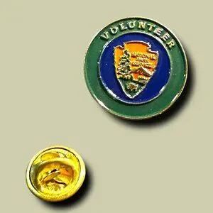National Park Service Volunteer Enamel Pin Round 1" Green & Blue With Gold Accen