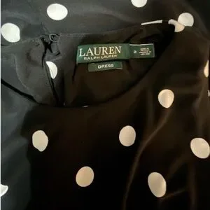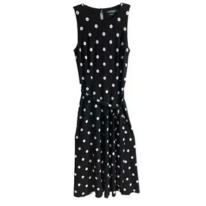 Ralph Lauren Black & White Polka Dot Midi Sleeveleas Dress Swing Skirt Belted Women’s 2