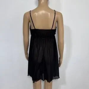 Vintage Y2K La Vie En Rose Rosette & Black Mesh Sheer Babydoll Teddy Size M