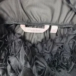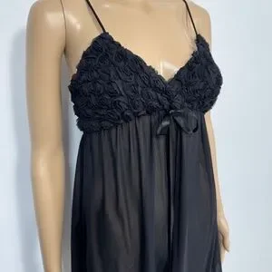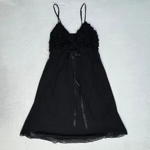 A stunning vintage La Vie en Rose babydoll / teddy. This piece is a quintessential example of early 2000s romantic lingerie, featuring a unique 3D rosette floral bust that adds incredible texture and a feminine, "dollette" feel. The bodice transitions into a sheer, flowing micro mesh skirt that creates a soft, ethereal silhouette. Finished with a delicate satin ribbon bow at the center and adjustable spaghetti straps for the perfect fit. Machine washable.
