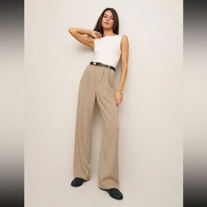 Reformation Beige Wide Leg Trousers