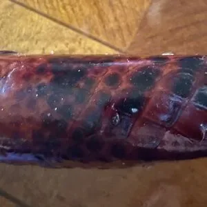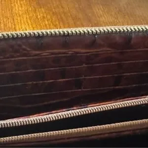 Slightly used but in good condition. The marks blend in with the overall alligator texture.