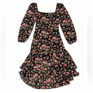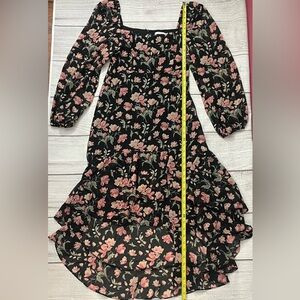 LUSH Women's Long Sleeve High-Low Boho Dress Black Red Floral Size Medium