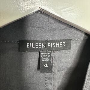 EILEEN FISHER Stand Collar Linen Open Front Jacket Steel Gray {3S24}