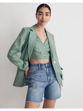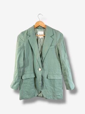 Madewell Larsen Blazer Green Linen XXS (2XS) One Button Jacket Preppy Academia