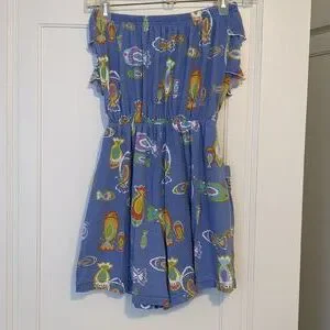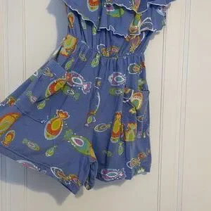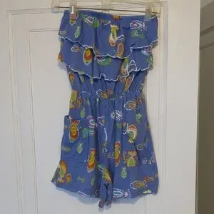 90s Malibu Barbie Comfy Cotton Beach Romper Swim Coverup Srapless Playsuit Small