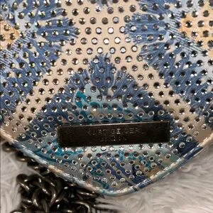 Kurt Geiger Blue and Silver Heart Crossbody with Crystal Detail