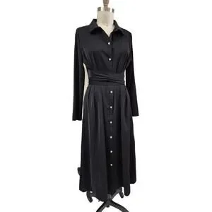 NWT Bebreez Chic 100% Polyester Shirt Dress with long Sash Tie Wrap Belt Black Sz L in new condition.