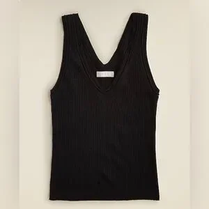 J. Crew Merino Wool Linen Blend Black Ribbed V-Neck Tank