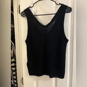 Sleeveless ribbed tank with a flattering V-neck. Soft, stretch knit for easy layering. Clean, minimalist look for everyday wear.