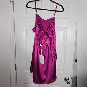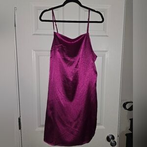 This elegant magenta pink satin slip dress offers a luxurious feel and a flattering fit. Has cute tie detail on the back. Perfect for a night in or a special occasion. size xlarge