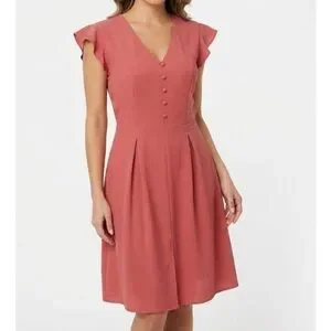 NEW without TAG! Monteau cap sleeve Midi Dress MAUVE SMALL Chic midi dress with V-neckline. Features button-front detail and cap sleeves. Ideal for versatile styling.