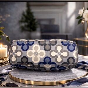 Stylish Coach shoulder bag with a modern blue and gray pattern. Perfect for any occasion. Great condition! No call outs that I’ve found.