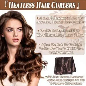 Heatless Hair Curler Overnight Blowout Rods Jumbo, Heatless Curls