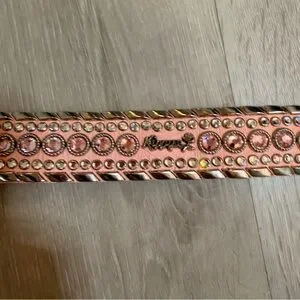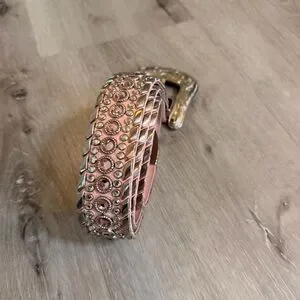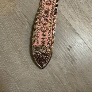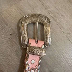 Stunning, high-end statement belt in a gorgeous light pink textured leather. This is a true collector’s piece for anyone who loves the Western "bling" or Y2K aesthetic!