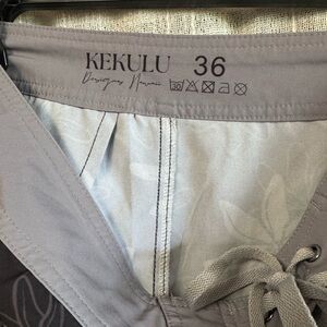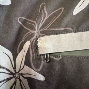 Comfortable black hybrid board shorts with gray floral print and gray trim. Quick-dry fabric and secure drawstring waist for an adjustable fit. Lightweight design transitions easily from water to street. Subtle logo detail on the leg for a clean finish.