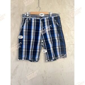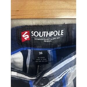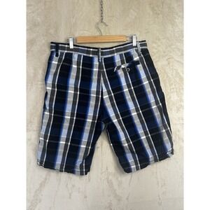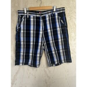 Southpole Mens Plaid Shorts Blue Black White Checkered Size 36 Y2K Streetwear