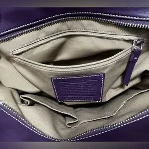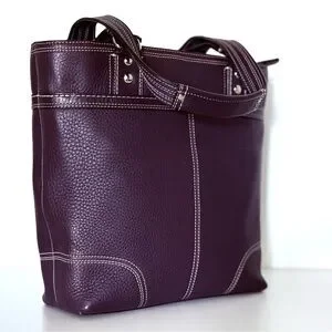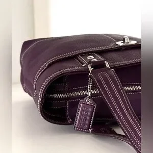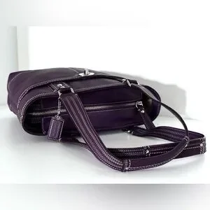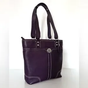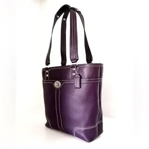 Elevate your everyday carry with this vintage Coach Hamptons Turnlock Tote, crafted in rich plum pebbled leather with signature contrast stitching and polished nickel hardware. This classic early-2000s Coach design blends timeless style with durable craftsmanship collectors appreciate.