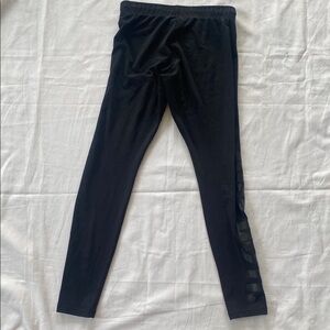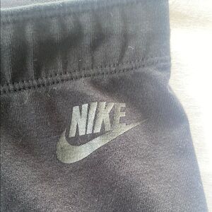 Experience ultimate comfort and flexibility with these Nike black leggings, crafted from a smooth fabric. Designed with a fitted silhouette and an elastic waistband, they offer a sleek look from waist to ankle. Perfect for athletic activities or casual wear, these leggings provide both style and functionality. They have never been worn and are in great condition HOWEVER (they have a small mark on the front pant leg which I provided a photo for!)
