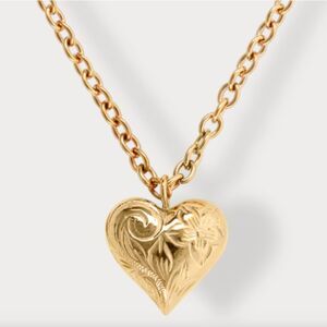 This gold-plated chain necklace with solid heart pendant from Hey Harper is the perfect blend of romantic and modern, detailed with an exclusive in-house floral engraving. Sturdy, durable, and made to last.