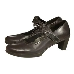 Naot Prima Bella Luma Black Leather Heeled Mary Jane Shoes Heels Size 7.5 / 38