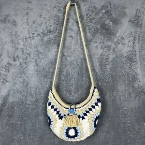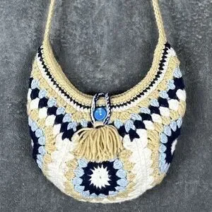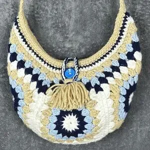 Crocheted Granny Square Purse Crossbody Bag Handbag Lined - BOHO/Vintage STYLE