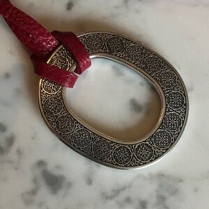 Brighton Red Leather and Silver Oval Necklace