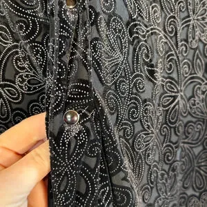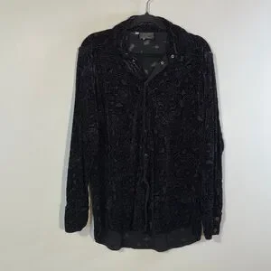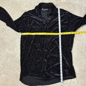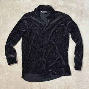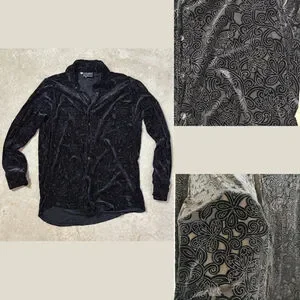 Vintage Shrine Of Hollywood Black Velvet Floral Button Down Shirt Men’s Medium