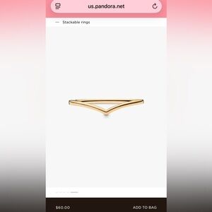 Slim 14k gold plated V-shaped ring by Pandora. Minimalist profile ideal for stacking. Subtle shine for everyday wear.