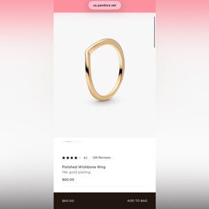 Pandora 14k Gold Plated Polished Wishbone Ring- Size 10