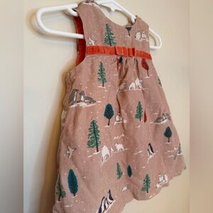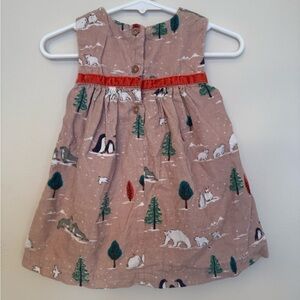 Baby Boden girls 3–6 months corduroy dress featuring a cozy winter woodland print. Dress is in excellent condition- no stains, holes, or flaws. Fast shipping!
