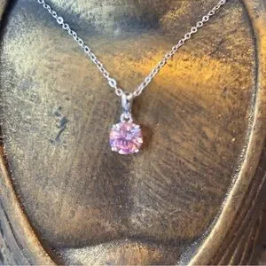 This beautiful necklace features a brilliant-cut moissanite in a rare, delicate Sakura Pink hue. Known for its incredible fire and brilliance, moissanite offers more "sparkle" than a diamond, and this pink shade is absolutely ethereal. Since it is lab grown, it will sparkle and last forever!!!